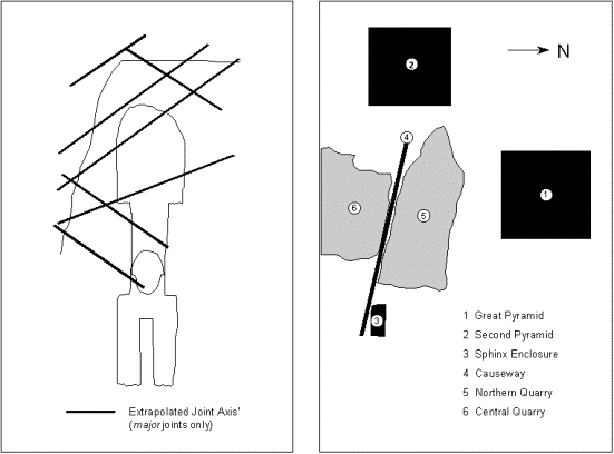 Figure 1: The Joints in the Sphinx Enclosure; and the Khufu & Khafre Quarries